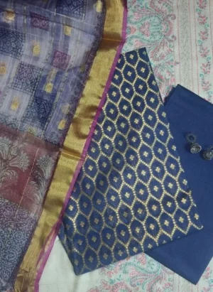 Banarasi Suit Set With Woven Multicolour Dupatta