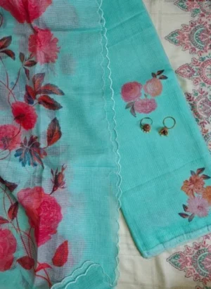 Turquoise Blue Floral Printed Kota Cotton Suit Set