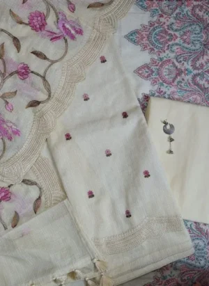 Soft Mul Cotton Suit with Delicate Embroidery
