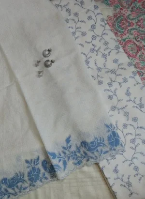 Elegant Off-White & Blue Embroidered Kota Cotton Suit Set