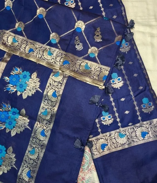 Elevate your ethnic collection with this beautifully woven royal blue Banarasi cotton suit set, crafted for comfort and timeless charm.