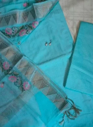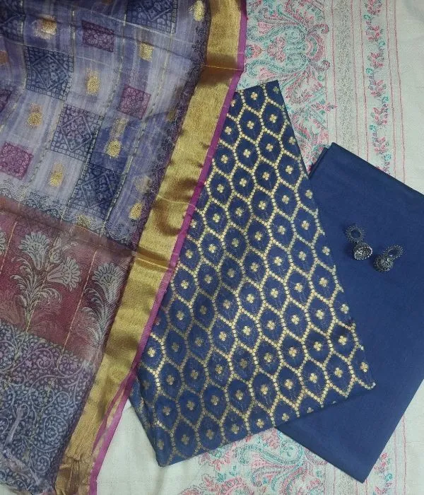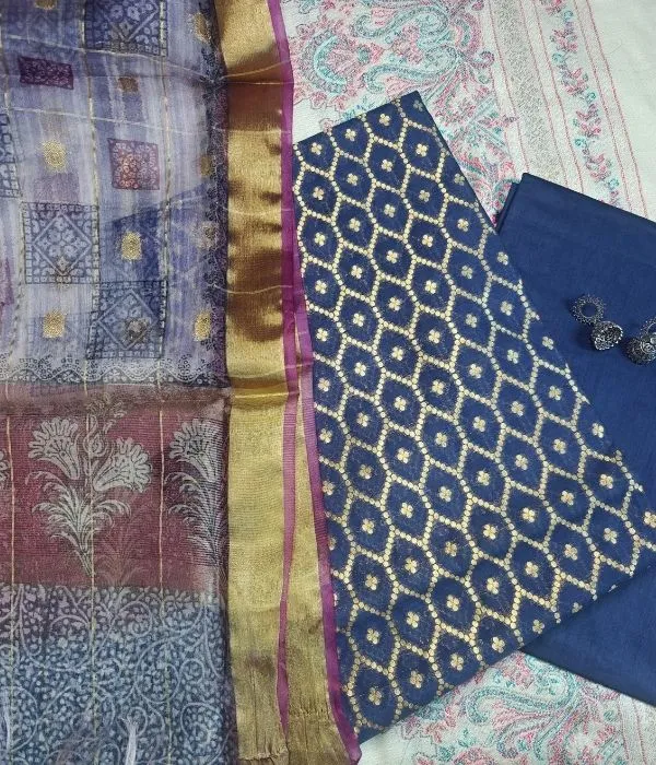 Experience the charm of timeless tradition with this premium Banarasi Cotton Suit Set. Designed in an elegant royal blue shade, the outfit combines classic Banarasi weaving with unmatched comfort – perfect for festive and ethnic occasions.