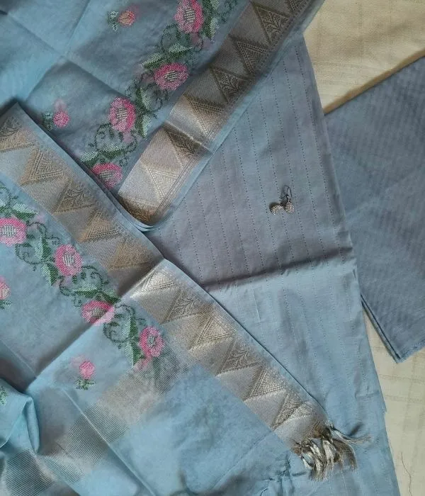 Dupatta: Lightweight cotton dupatta adorned with intricate embroidery and zari border, offering a graceful drape.