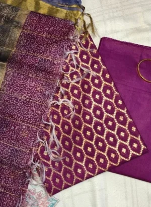 Elevate your ethnic wardrobe with this graceful light brown premium cotton suit set, designed for elegance and comfort.